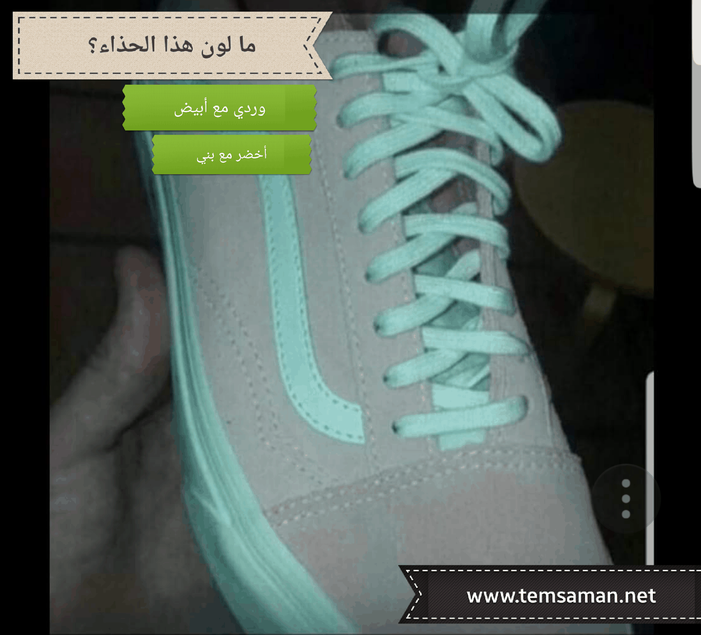 إضافة إلى هذا الحذاء الذي يظهر للبعض وردي مع أبيض و للآخرين أخضر وبني,